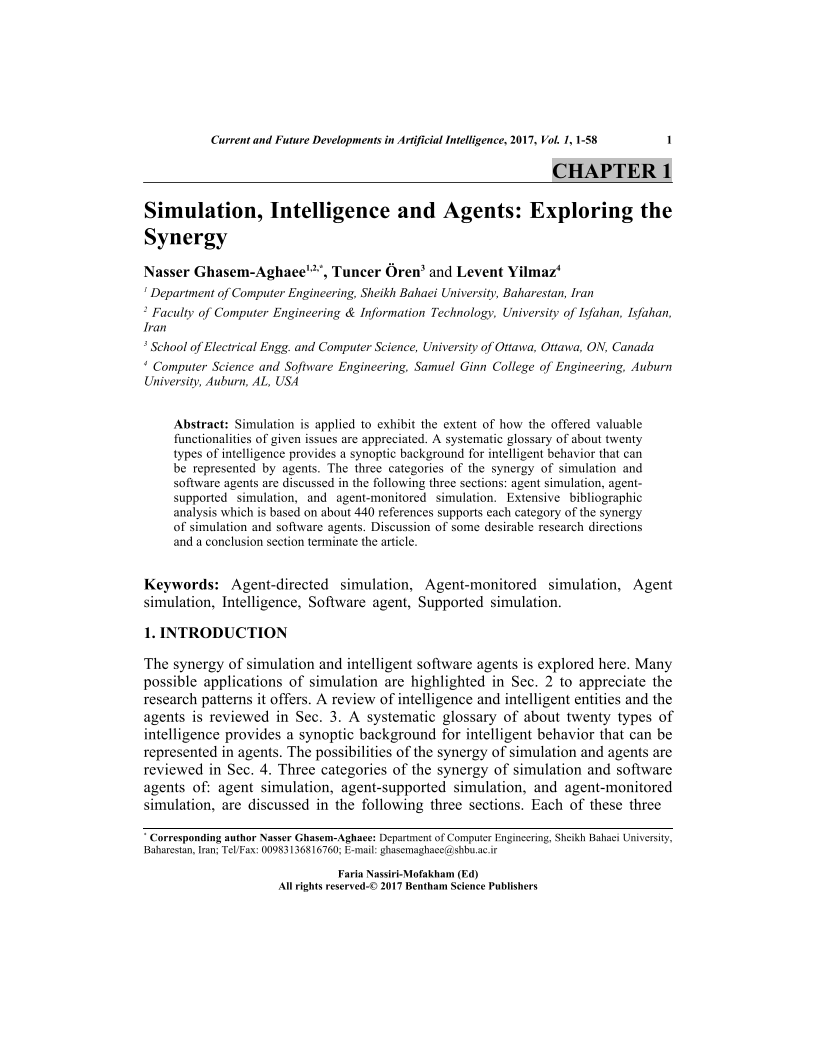 Simulation, Intelligence and Agents: Exploring the Synergy, Page 1 of 1