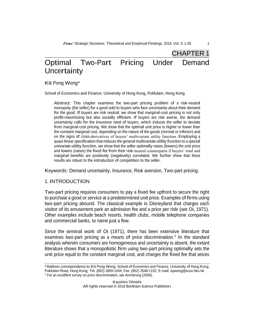 Optimal Two-Part Pricing Under Demand Uncertainty, Page 1 of 1