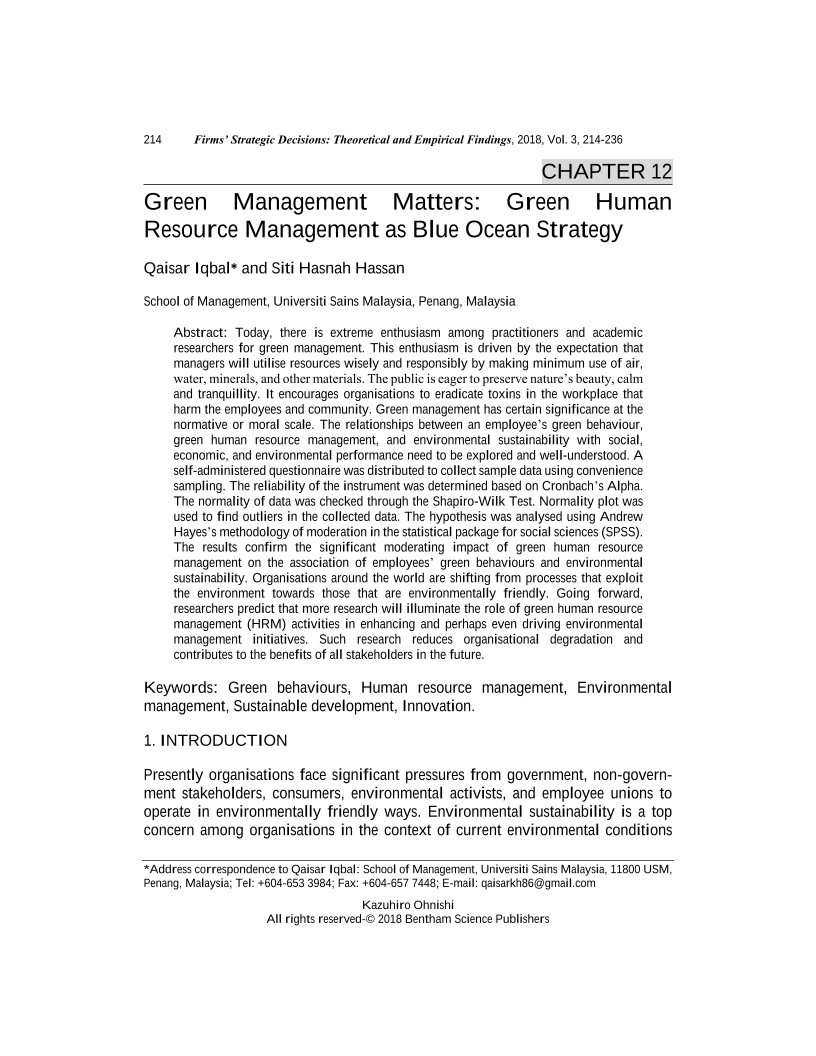 Green Management Matters: Green Human Resource Management as Blue Ocean Strategy, Page 1 of 1