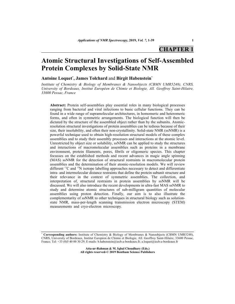 Atomic Structural Investigations of Self-Assembled Protein Complexes by Solid-State NMR, Page 1 of 1
