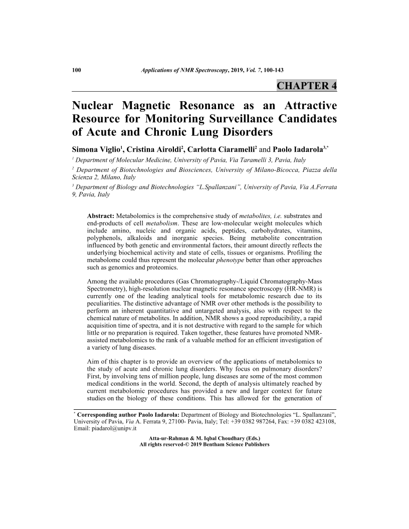 Nuclear Magnetic Resonance as an Attractive Resource for Monitoring Surveillance Candidates of Acute and Chronic Lung Disorders, Page 1 of 1