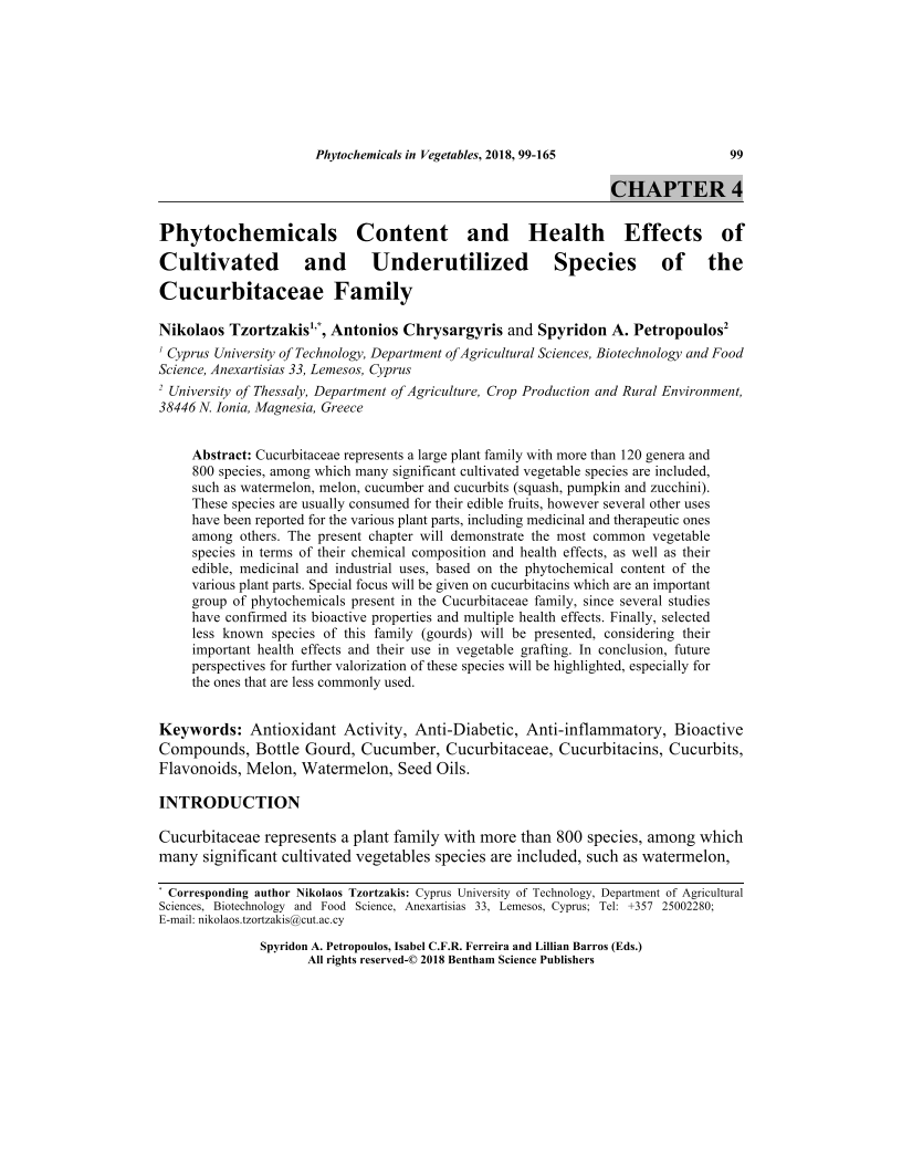 Phytochemicals Content and Health Effects of Cultivated and Underutilized Species of the Cucurbitaceae Family, Page 1 of 1