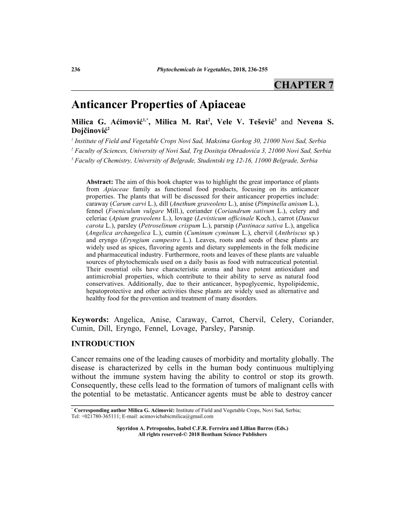 Anticancer Properties of Apiaceae, Page 1 of 1