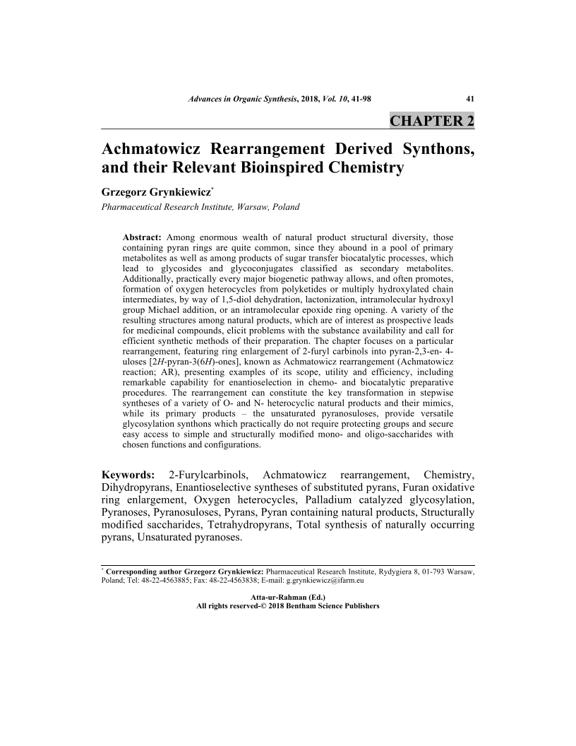 Achmatowicz Rearrangement Derived Synthons, and their Relevant Bioinspired Chemistry, Page 1 of 1