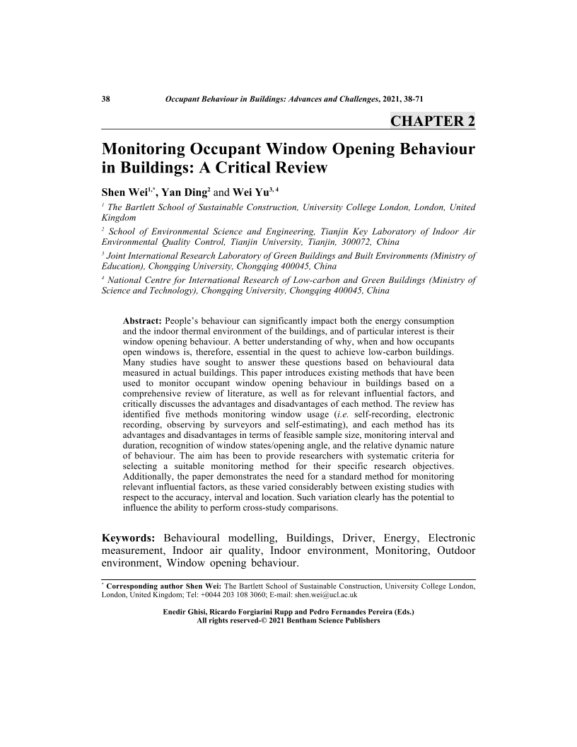 Monitoring Occupant Window Opening Behaviour in Buildings: A Critical Review, Page 1 of 1