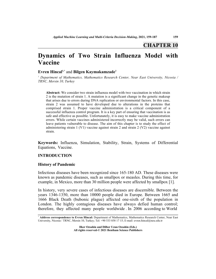 Dynamics of Two Strain Influenza Model with Vaccine, Page 1 of 1