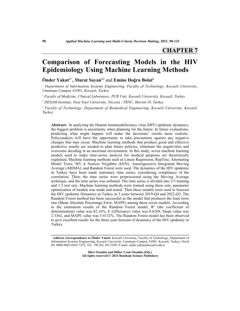 Comparison of Forecasting Models in the HIV Epidemiology Using Machine Learning Methods, Page 1 of 1