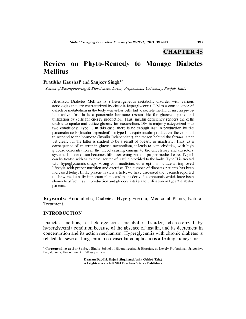 Review on Phyto-Remedy to Manage Diabetes Mellitus, Page 1 of 1