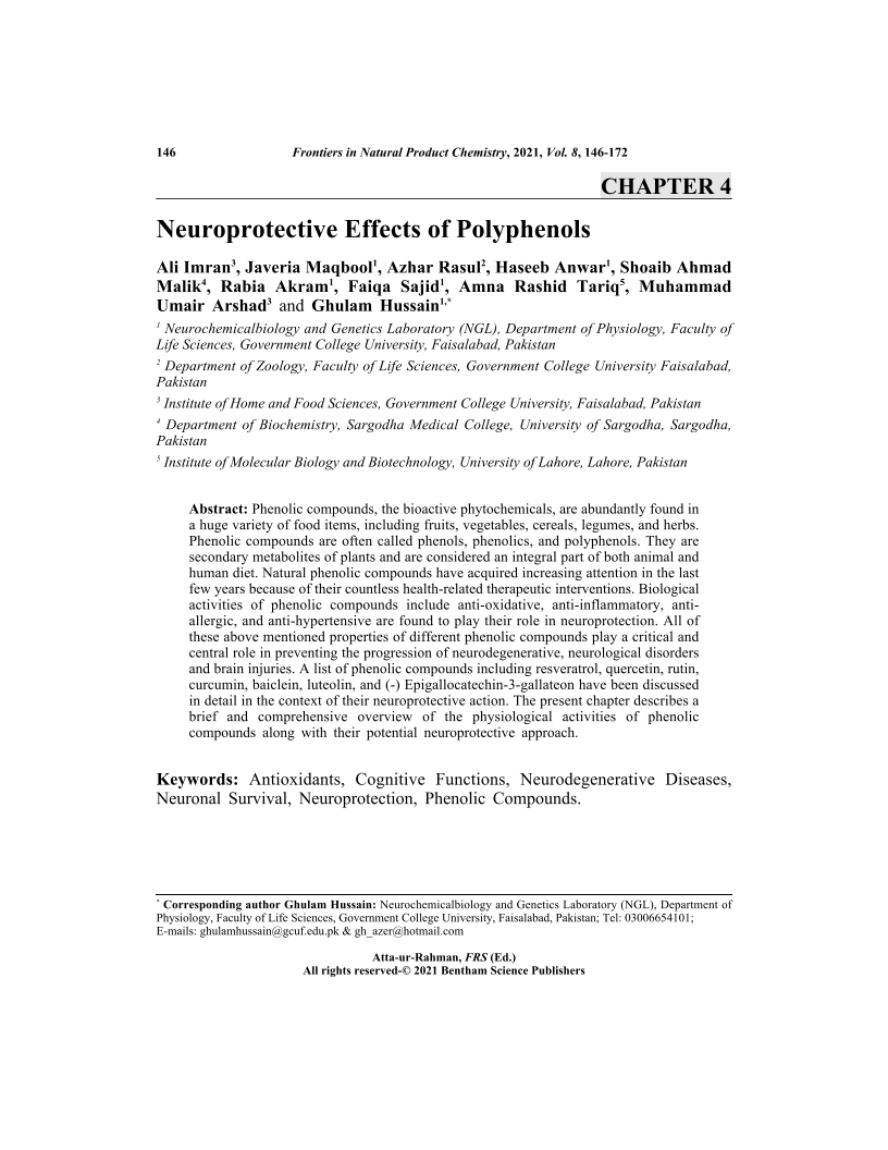 Neuroprotective Effects of Polyphenols, Page 1 of 1