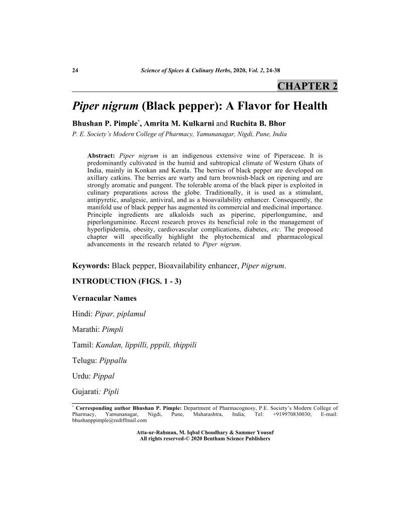 Piper nigrum (Black pepper): A Flavor for Health, Page 1 of 1