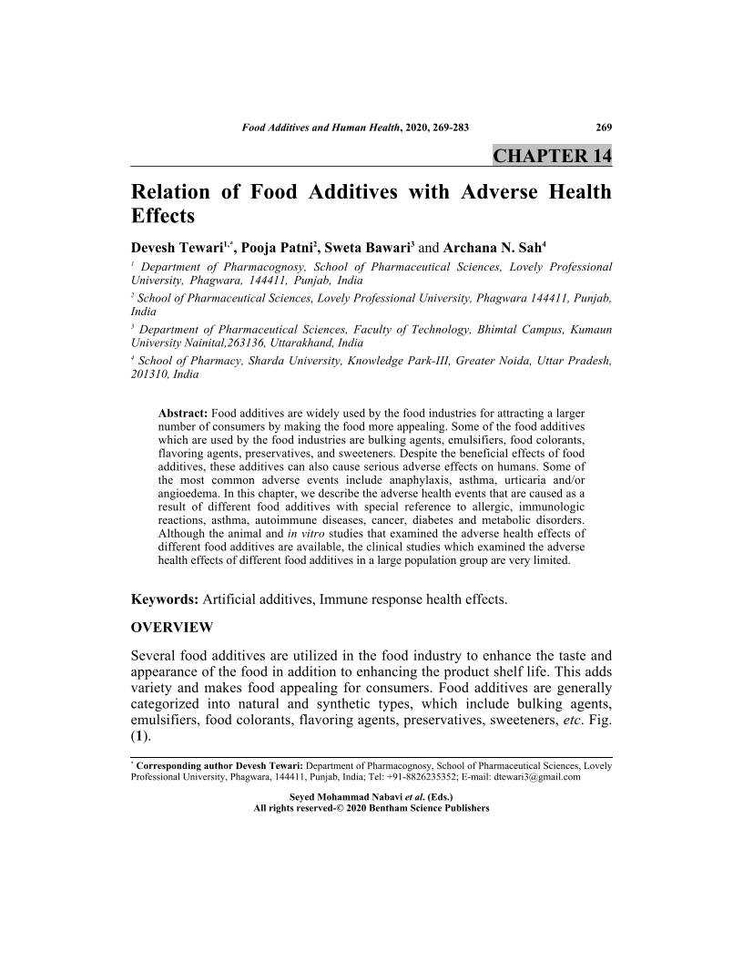 Relation of Food Additives with Adverse Health Effects, Page 1 of 1