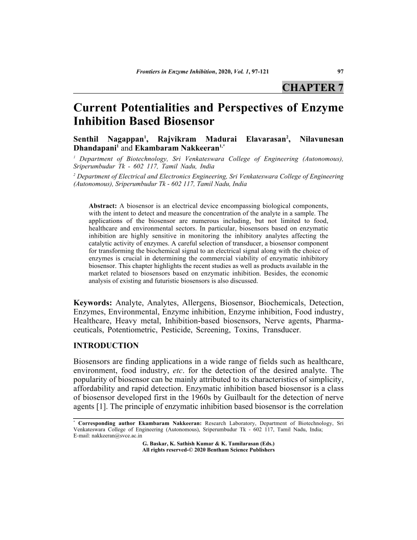 Current Potentialities and Perspectives of Enzyme Inhibition Based Biosensor, Page 1 of 1