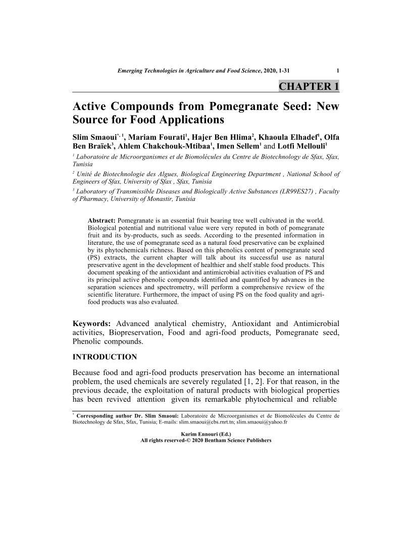 - Authors: Slim Smaoui1, Mariam Fourati2, Hajer Ben Hlima3, Khaoula Elhadef4, Olfa Ben Braïek5, Ahlem Chakchouk Mtibaa6, Imen Sellem7, Lotfi Mellouli8