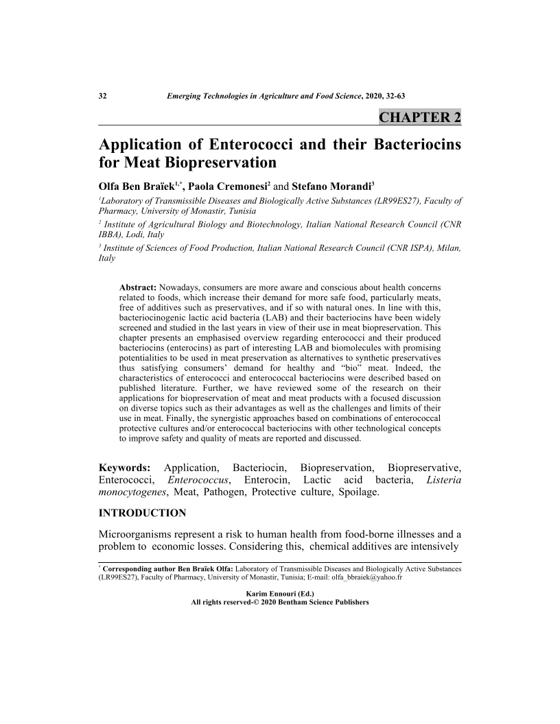Application of Enterococci and their Bacteriocins for Meat Biopreservation, Page 1 of 1