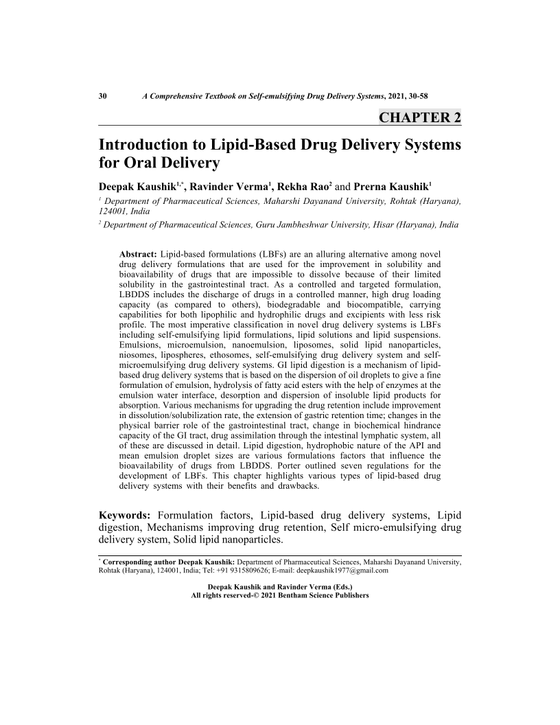 Introduction to Lipid-Based Drug Delivery Systems for Oral Delivery, Page 1 of 1
