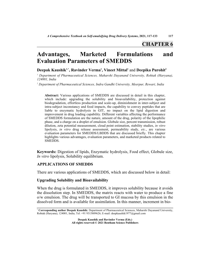Advantages, Marketed Formulations and Evaluation Parameters of SMEDDS, Page 1 of 1