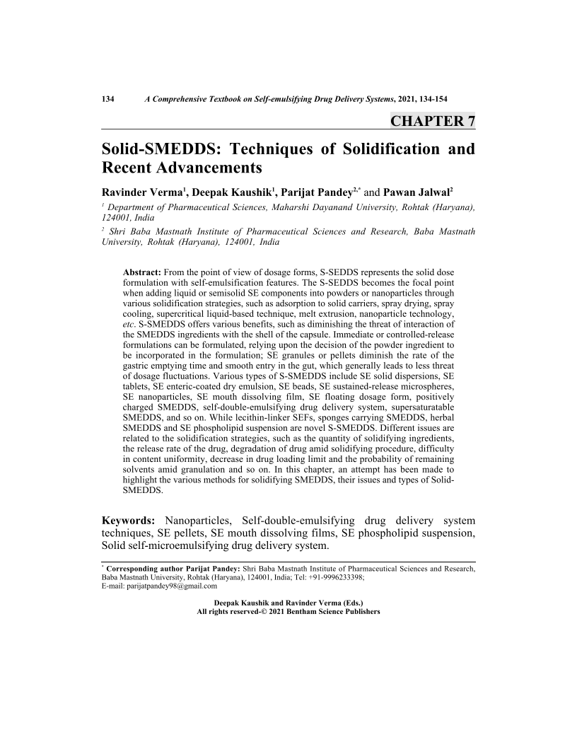 Solid-SMEDDS: Techniques of Solidification and Recent Advancements, Page 1 of 1
