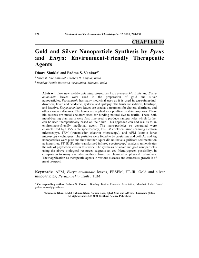 Gold and Silver Nanoparticle Synthesis by Pyrus and Eurya: Environment-Friendly Therapeutic Agents, Page 1 of 1
