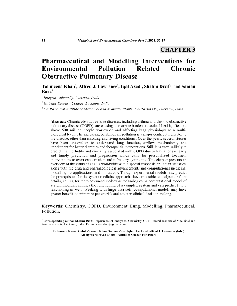 - Source: Medicinal and Environmental Chemistry: Experimental Advances and Simulations (Part II) , pp 32-57