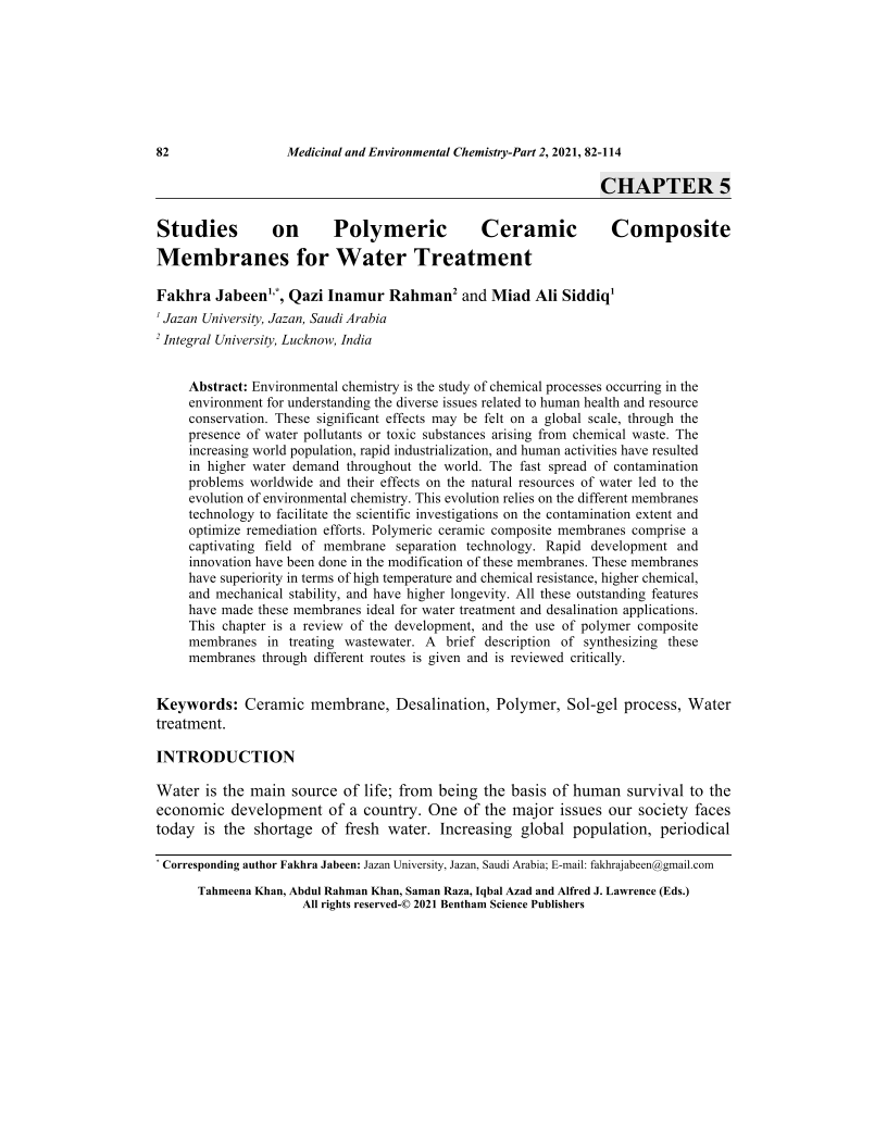 Studies on Polymeric Ceramic Composite Membranes for Water Treatment, Page 1 of 1