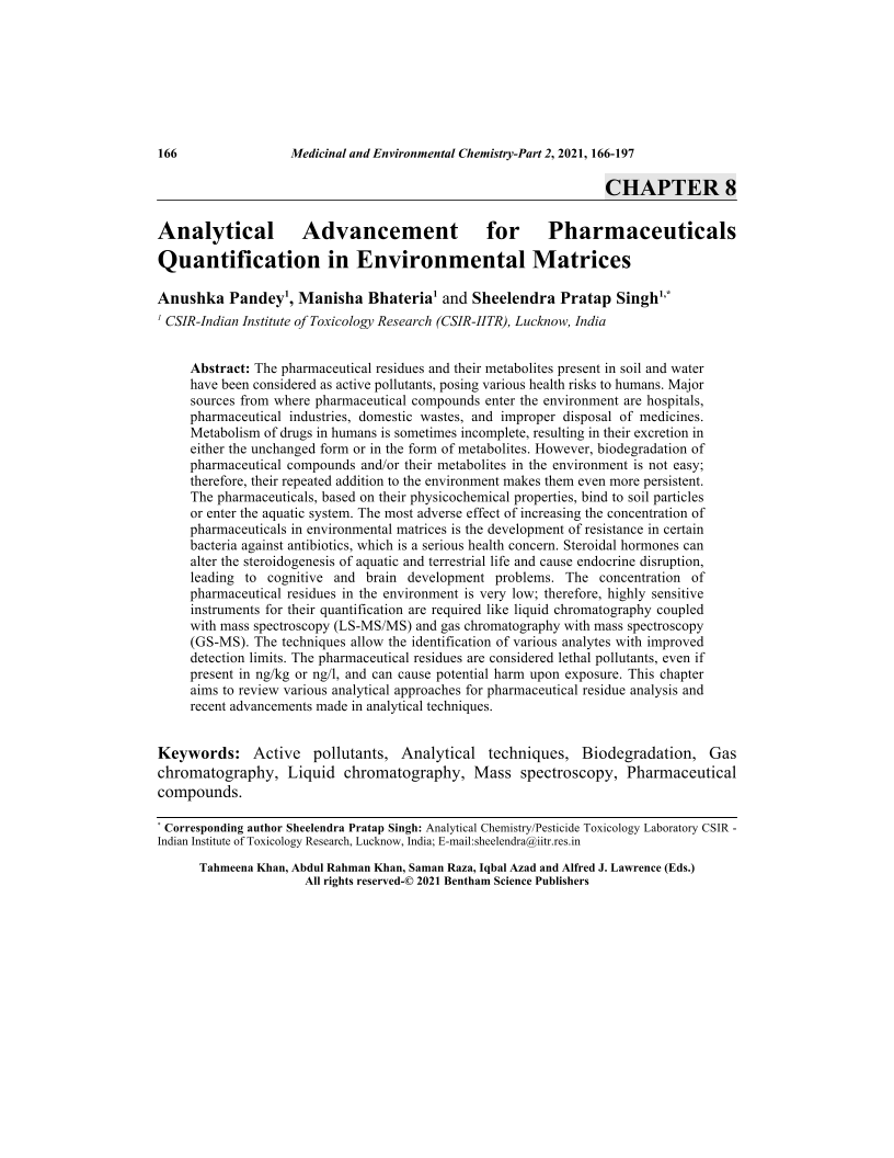 - Source: Medicinal and Environmental Chemistry: Experimental Advances and Simulations (Part II) , pp 166-197