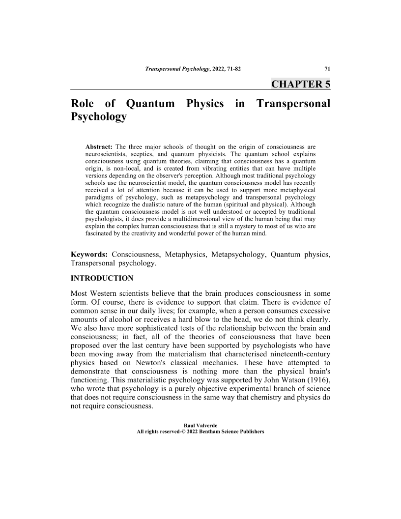 Role of Quantum Physics in Transpersonal Psychology, Page 1 of 1