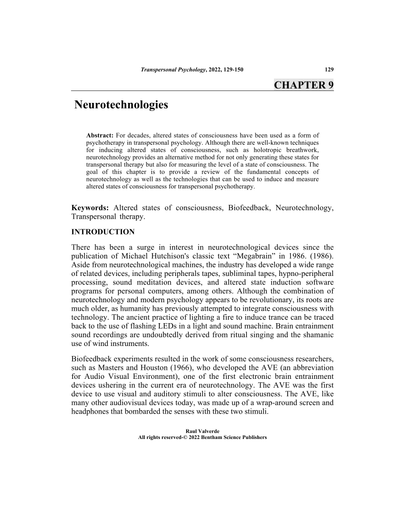 - Source: Transpersonal Psychology: Altered States of Consciousness, Biofeedback, and Neurotechnology , pp 129-150