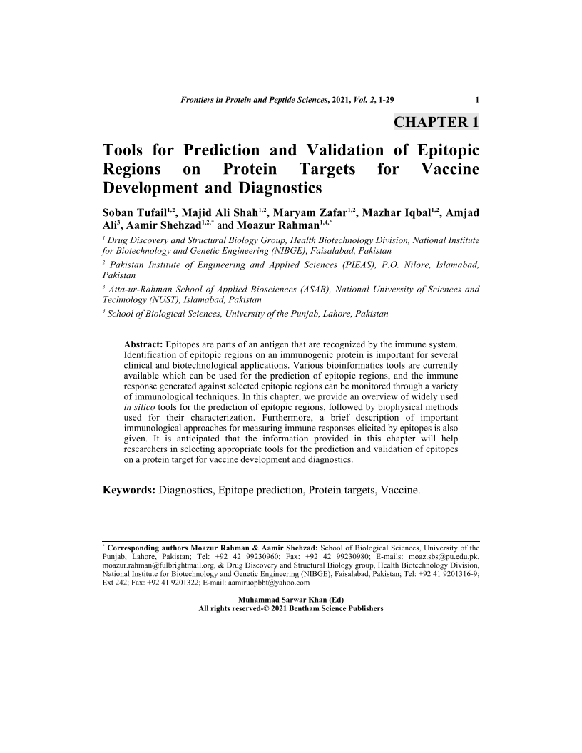 View Affiliations Hide Affiliations1 Drug Discovery and Structural Biology Group, Health Biotechnology Division, National Institute for Biotechnology and Genetic Engineering (NIBGE), Faisalabad, Pakistan 2 Drug Discovery and Structural Biology Group, Health Biotechnology Division, National Institute for Biotechnology and Genetic Engineering (NIBGE), Faisalabad, Pakistan 3 Drug Discovery and Structural Biology Group, Health Biotechnology Division, National Institute for Biotechnology and Genetic Engineering (NIBGE), Faisalabad, Pakistan 4 Drug Discovery and Structural Biology Group, Health Biotechnology Division, National Institute for Biotechnology and Genetic Engineering (NIBGE), Faisalabad, Pakistan 5 Atta ur-Rahman School of Applied Biosciences (ASAB), National University of Sciences and Technology (NUST), Islamabad, Pakistan 6 Drug Discovery and Structural Biology Group, Health Biotechnology Division, National Institute for Biotechnology and Genetic Engineering (NIBGE), Faisalabad, Pakistan 7 Drug Discovery and Structural Biology Group, Health Biotechnology Division, National Institute for Biotechnology and Genetic Engineering (NIBGE), Faisalabad, Pakistan