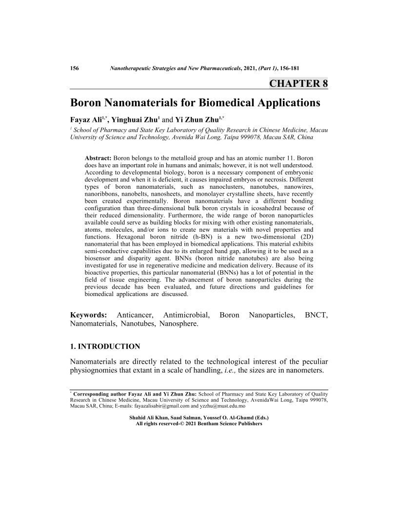 Boron Nanomaterials for Biomedical Applications, Page 1 of 1
