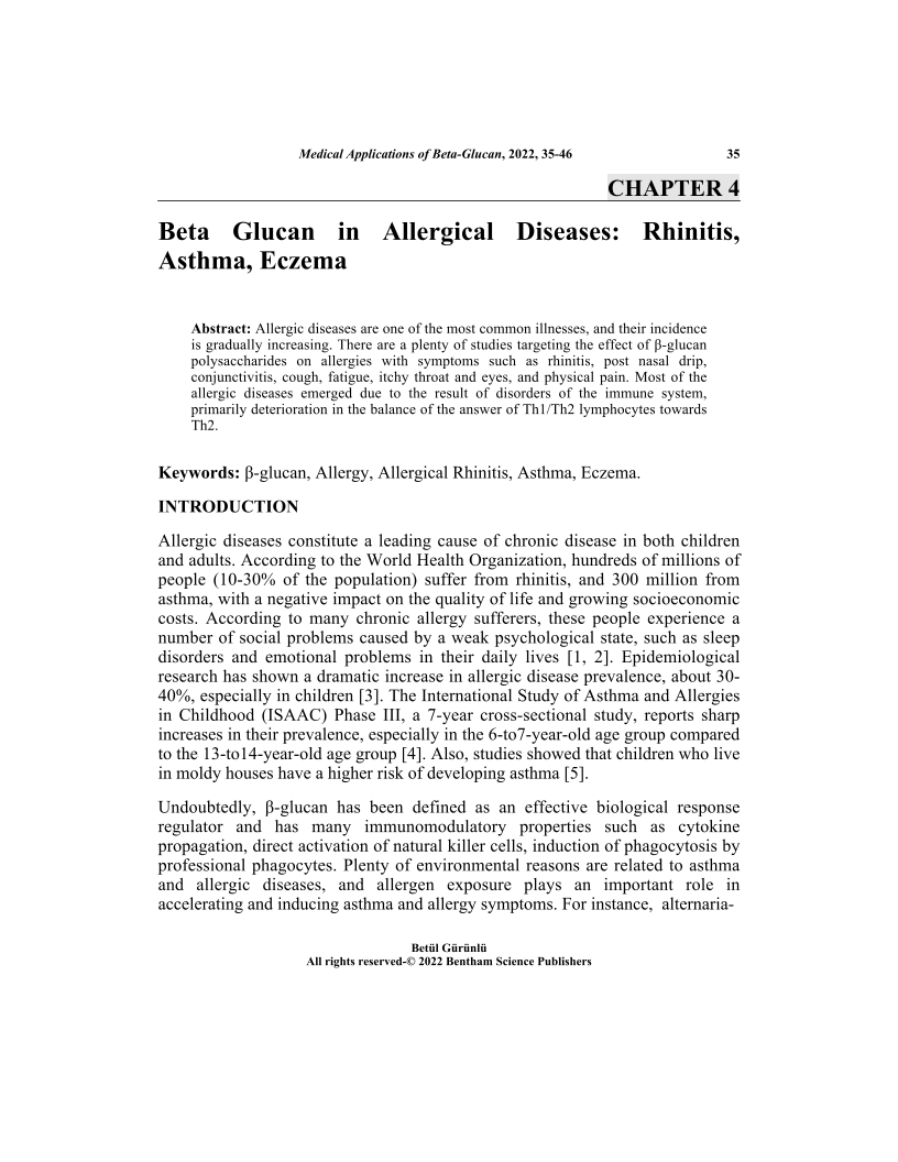 - Source: Medical Applications of Beta-Glucan , pp 35-46