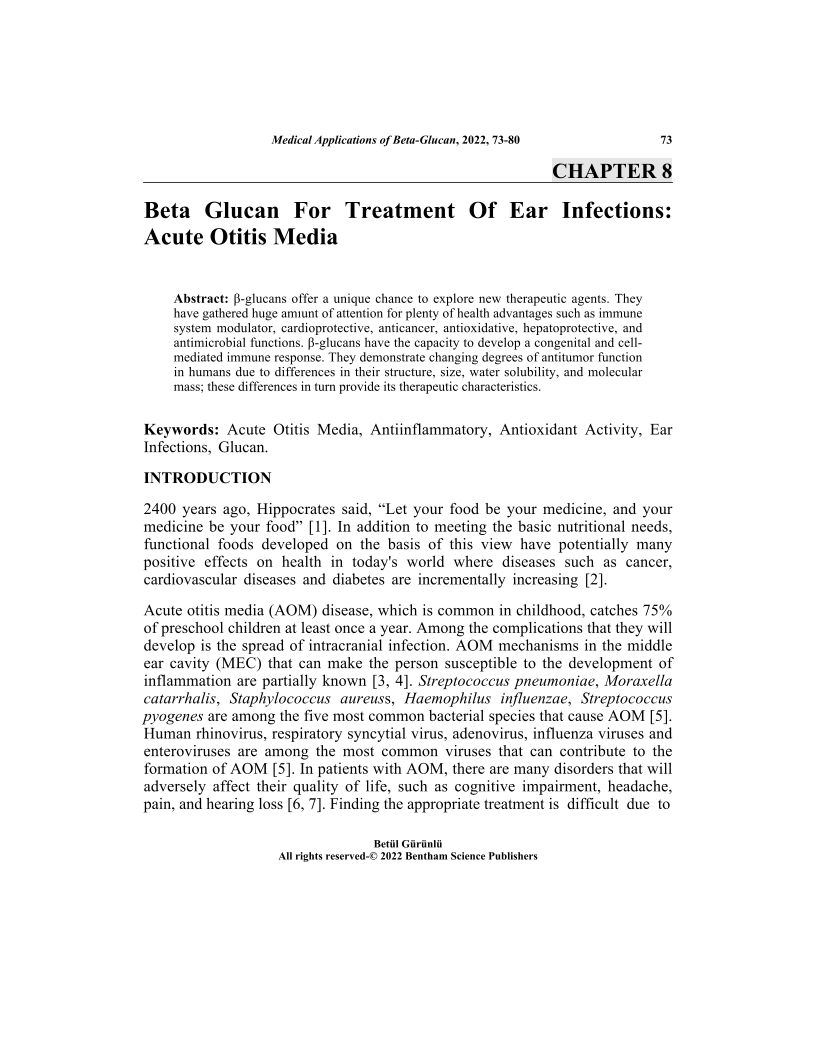 - Source: Medical Applications of Beta-Glucan , pp 73-80