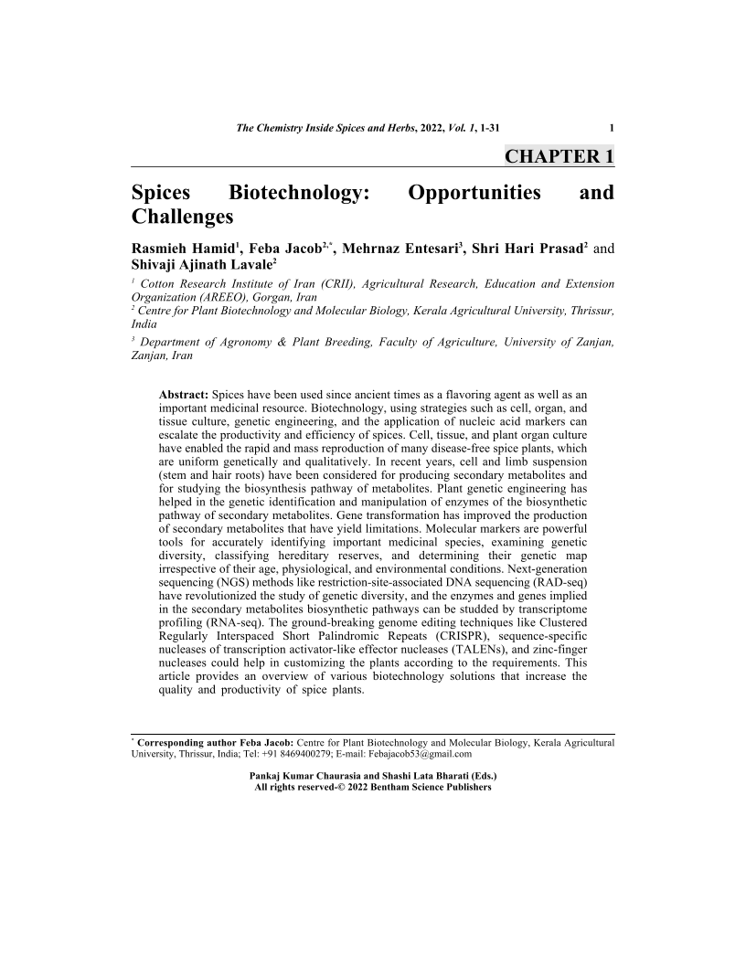 Spices Biotechnology: Opportunities and Challenges, Page 1 of 1