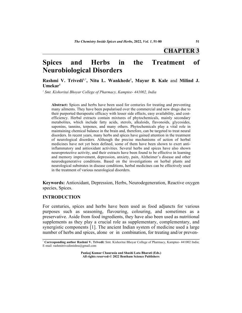 Spices and Herbs in the Treatment of Neurobiological Disorders, Page 1 of 1