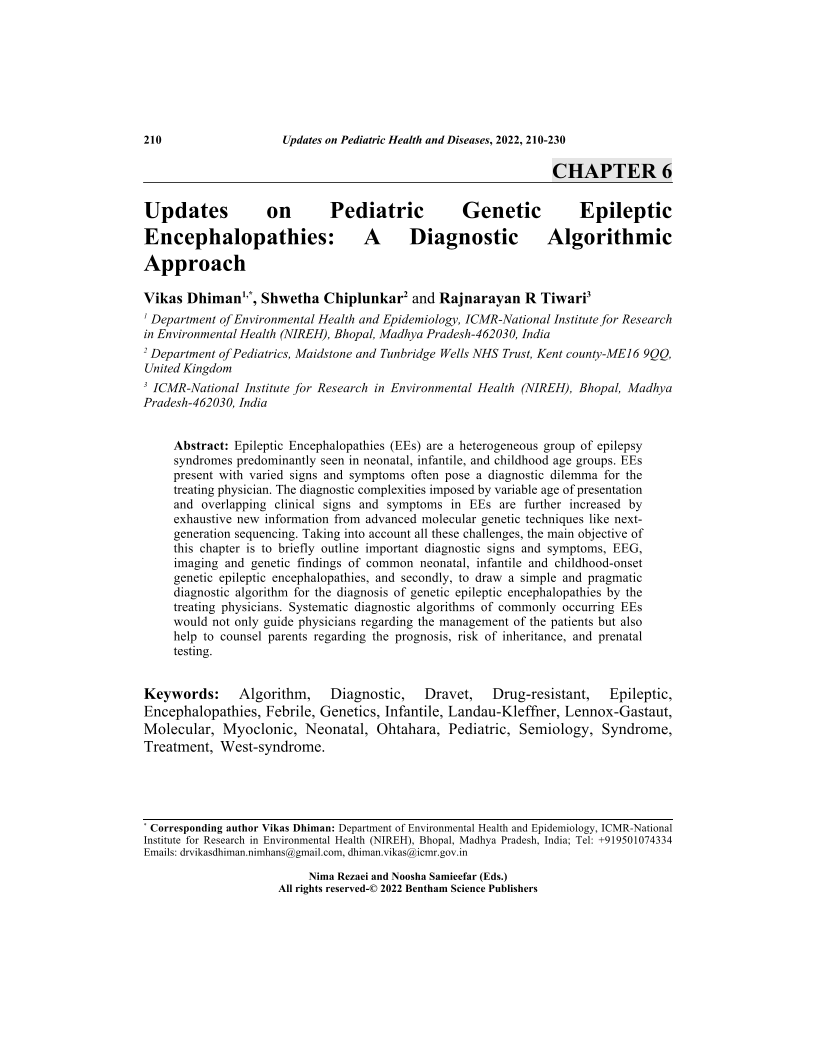 View Affiliations Hide Affiliations1 Department of Environmental Health and Epidemiology, ICMR National Institute for Researchin Environmental Health (NIREH), Bhopal, Madhya Pradesh-462030, India 2 Department of Pediatrics, Maidstone and Tunbridge Wells NHS Trust, Kent county-ME16 9QQ, United Kingdom 3 ICMR-National Institute for Research in Environmental Health (NIREH), Bhopal, MadhyaPradesh-462030, India