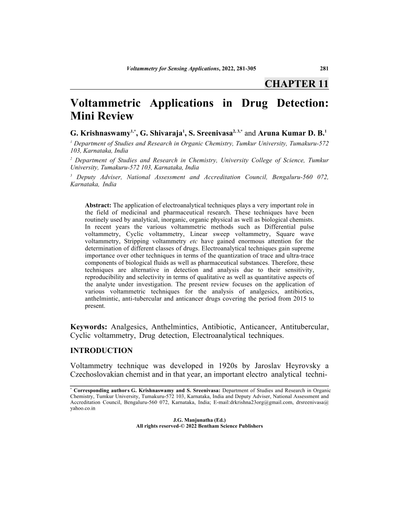 Voltammetric Applications in Drug Detection: Mini Review, Page 1 of 1