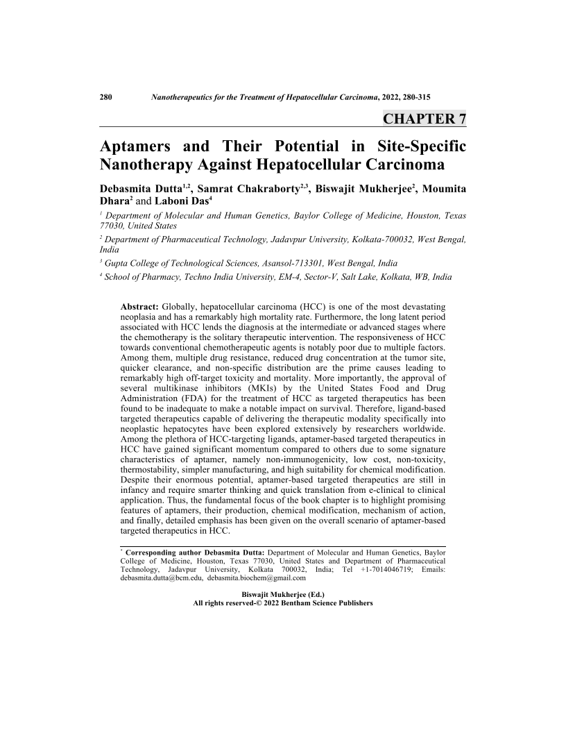 Aptamers and Their Potential in Site-Specific Nanotherapy Against Hepatocellular Carcinoma, Page 1 of 1