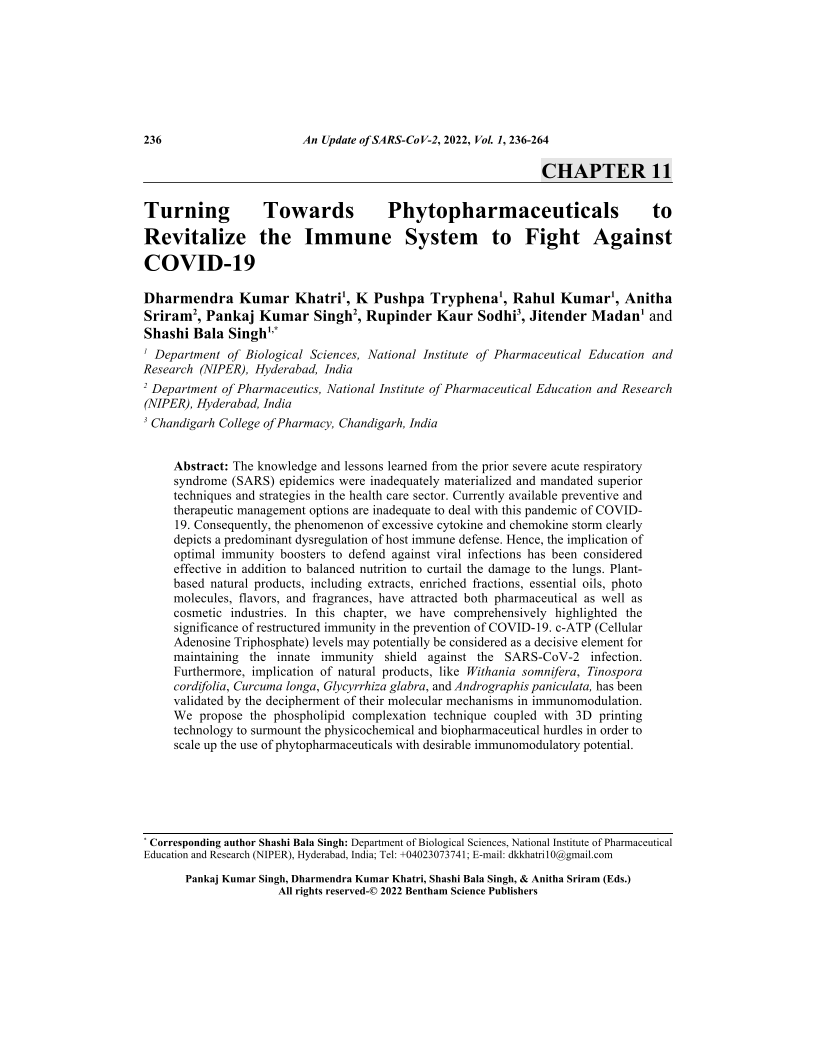 Turning Towards Phytopharmaceuticals to Revitalize the Immune System to Fight Against COVID-19, Page 1 of 1