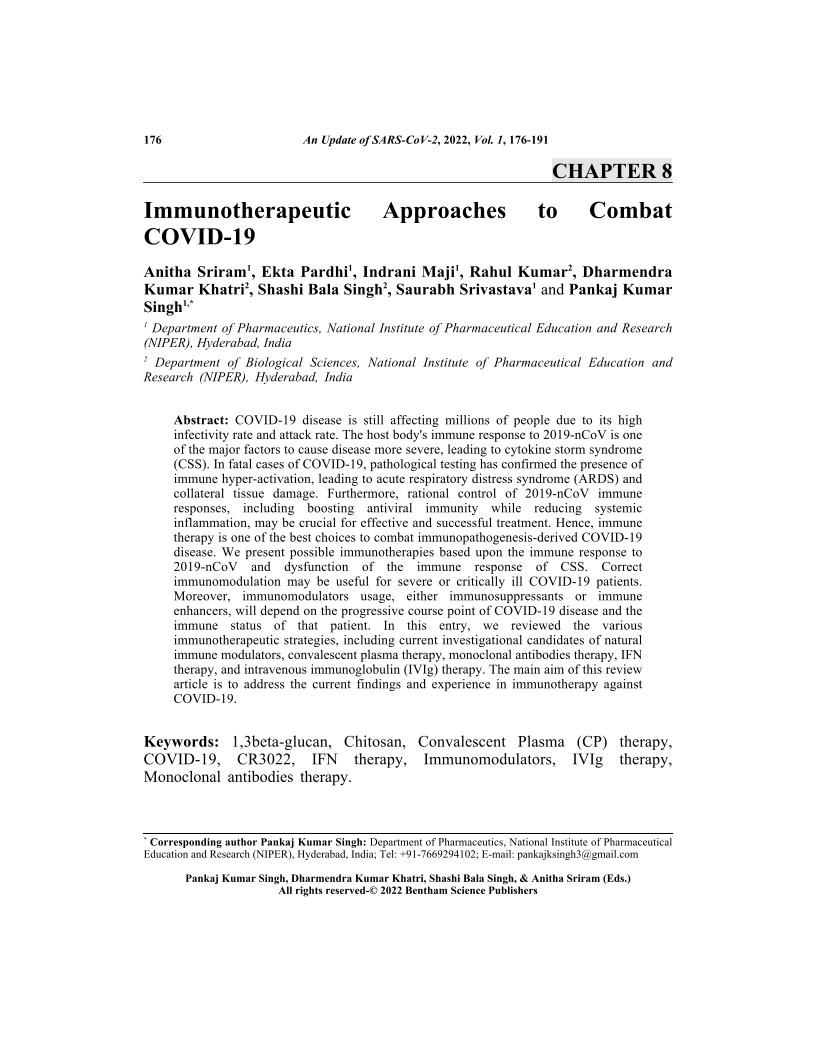 Immunotherapeutic Approaches to Combat COVID-19, Page 1 of 1