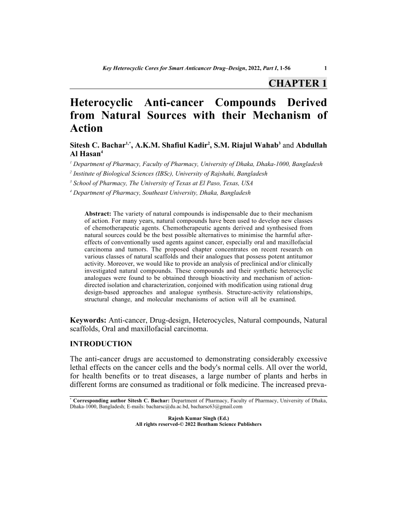 - Source: Key Heterocyclic Cores for Smart Anticancer Drug–Design Part I , pp 1-56