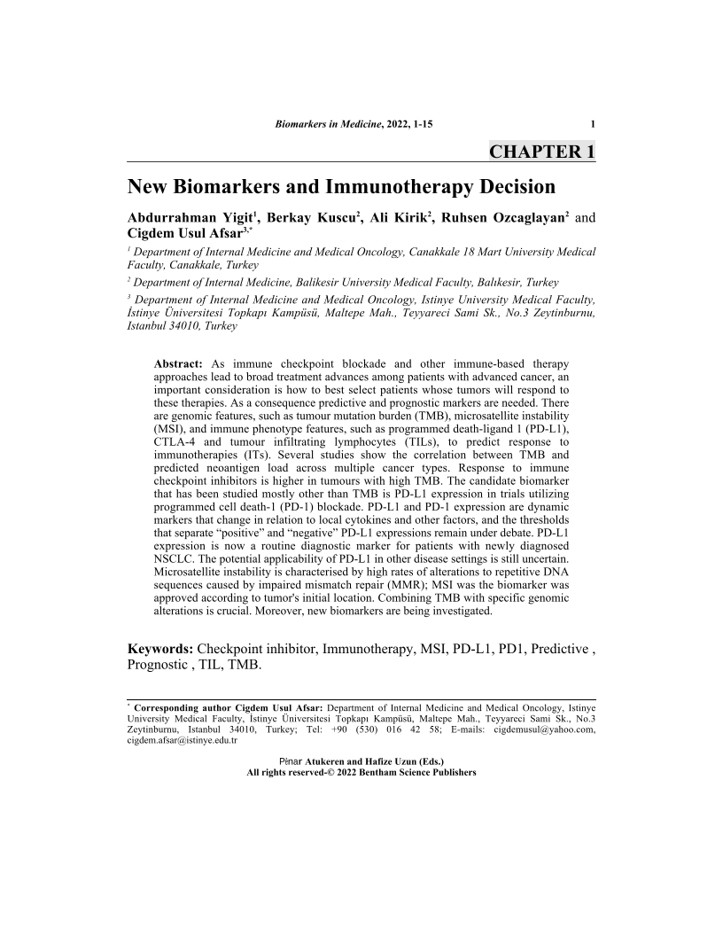 New Biomarkers and Immunotherapy Decision, Page 1 of 1