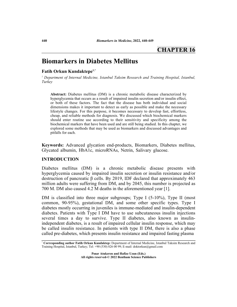 Biomarkers in Diabetes Mellitus, Page 1 of 1