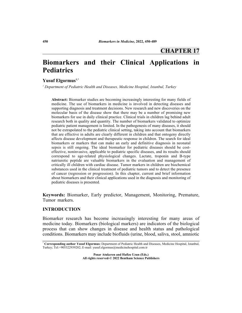 Biomarkers and their Clinical Applications in Pediatrics, Page 1 of 1