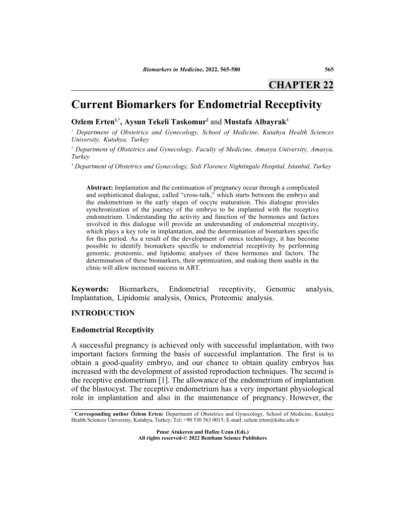Current Biomarkers for Endometrial Receptivity, Page 1 of 1