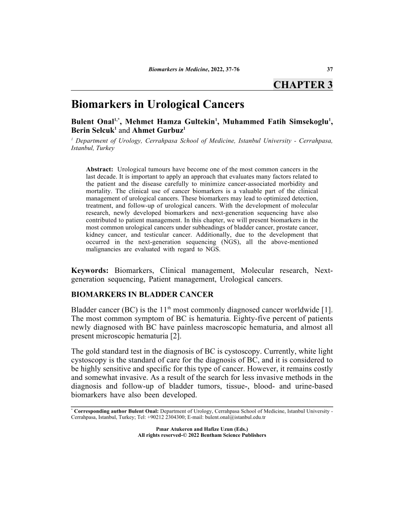 Biomarkers in Urological Cancers, Page 1 of 1