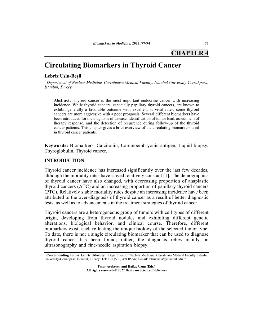 Circulating Biomarkers in Thyroid Cancer, Page 1 of 1