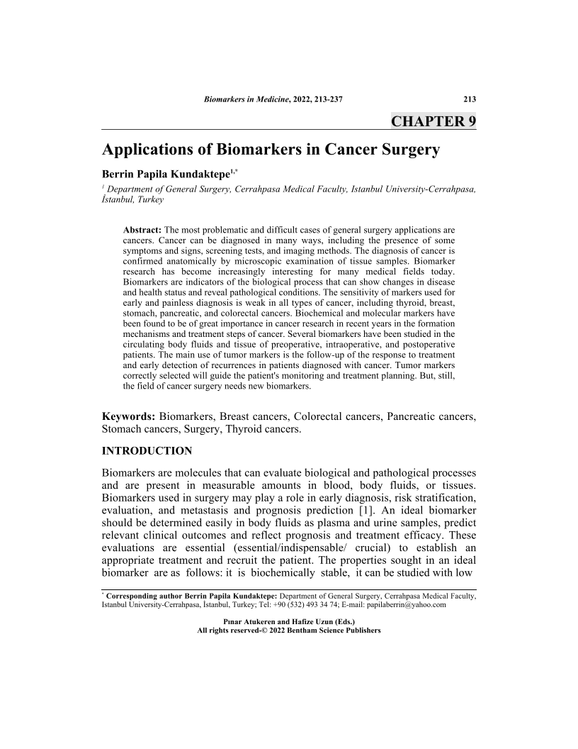 Applications of Biomarkers in Cancer Surgery, Page 1 of 1
