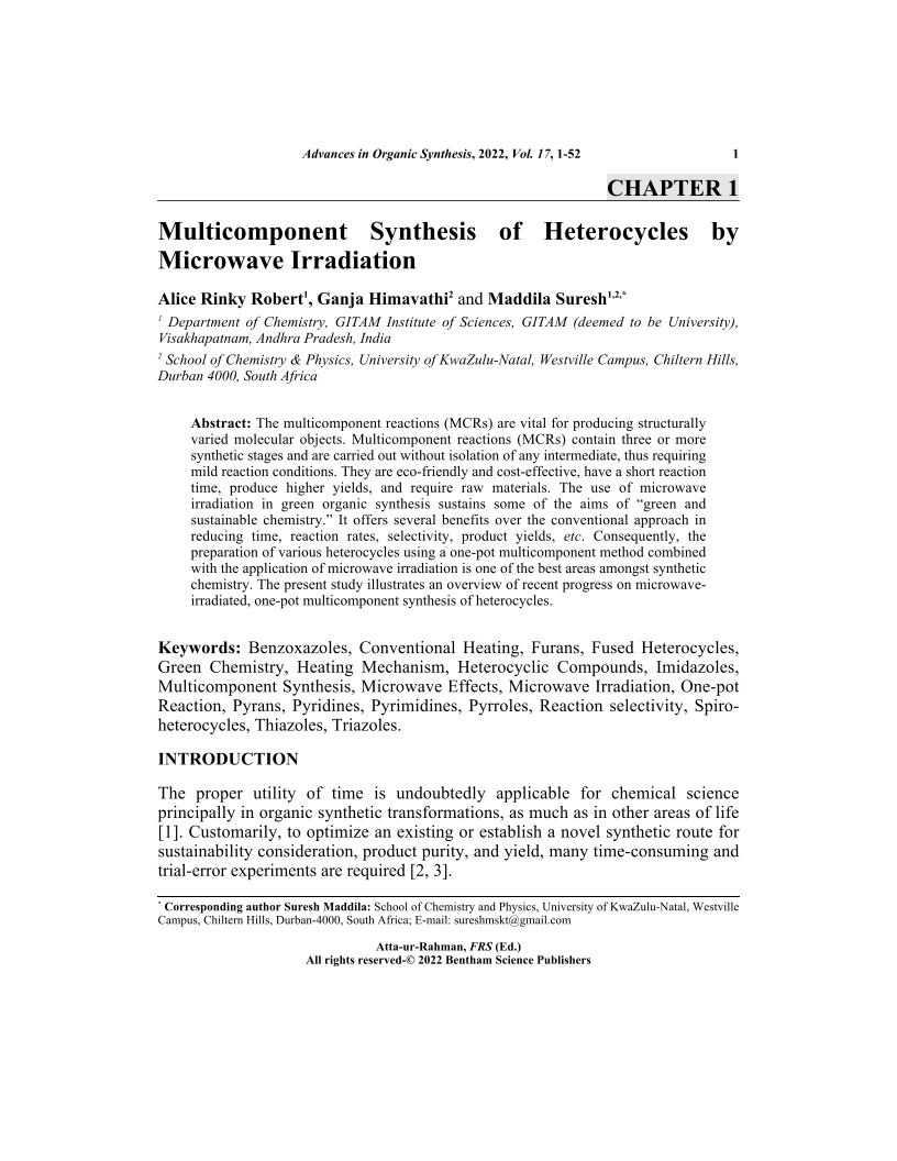 Multicomponent Synthesis of Heterocycles by Microwave Irradiation, Page 1 of 1