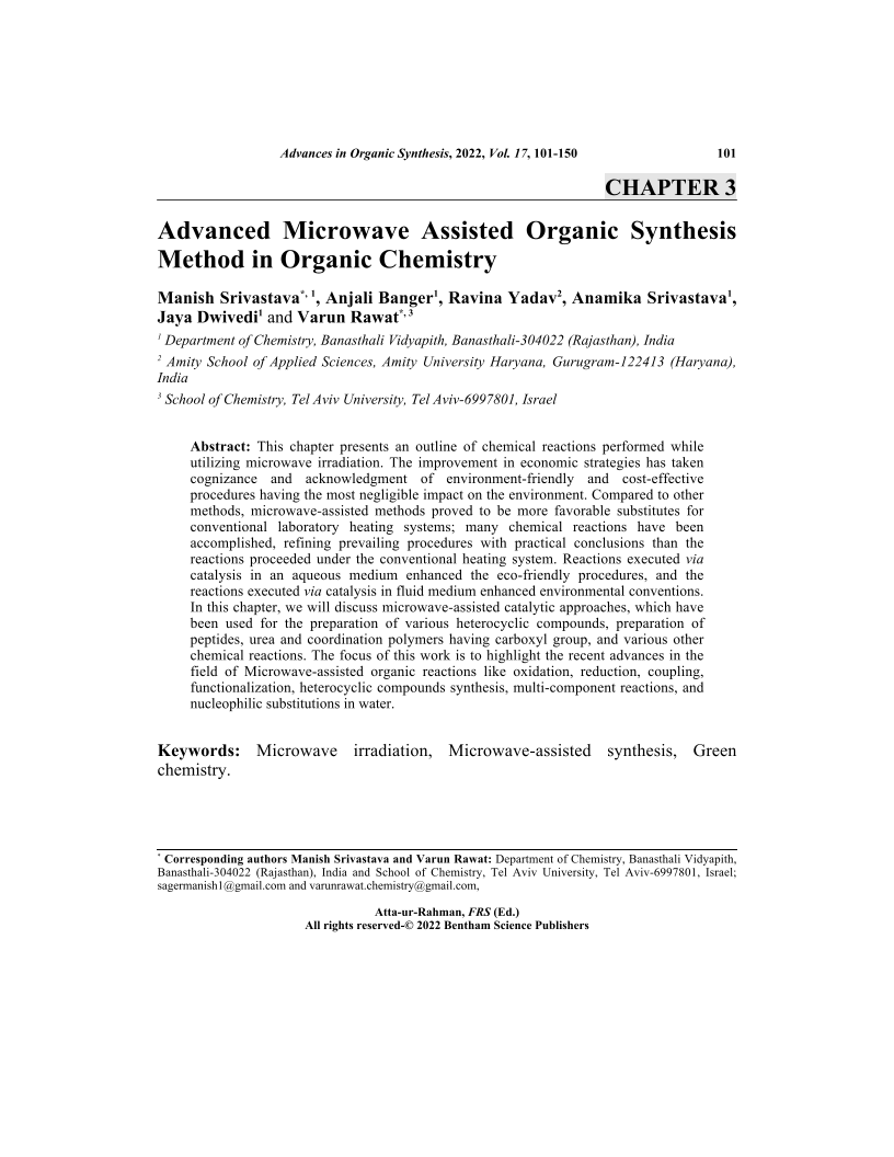 View Affiliations Hide Affiliations1 Department of Chemistry, Banasthali Vidyapith, Banasthali 304022 (Rajasthan), India 2 Department of Chemistry, Banasthali Vidyapith, Banasthali-304022 (Rajasthan), India 3 Amity School of Applied Sciences, Amity University Haryana, Gurugram-122413 (Haryana), India 4 Department of Chemistry, Banasthali Vidyapith, Banasthali-304022 (Rajasthan), India 5 Department of Chemistry, Banasthali Vidyapith, Banasthali-304022 (Rajasthan), India 6 School of Chemistry, Tel Aviv University, Tel Aviv-6997801, Israel