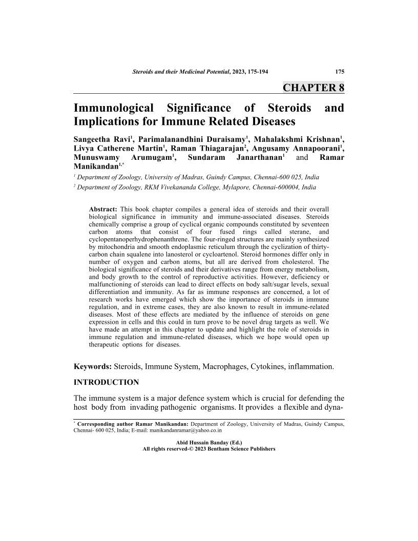 Immunological Significance of Steroids and Implications for Immune Related Diseases, Page 1 of 1