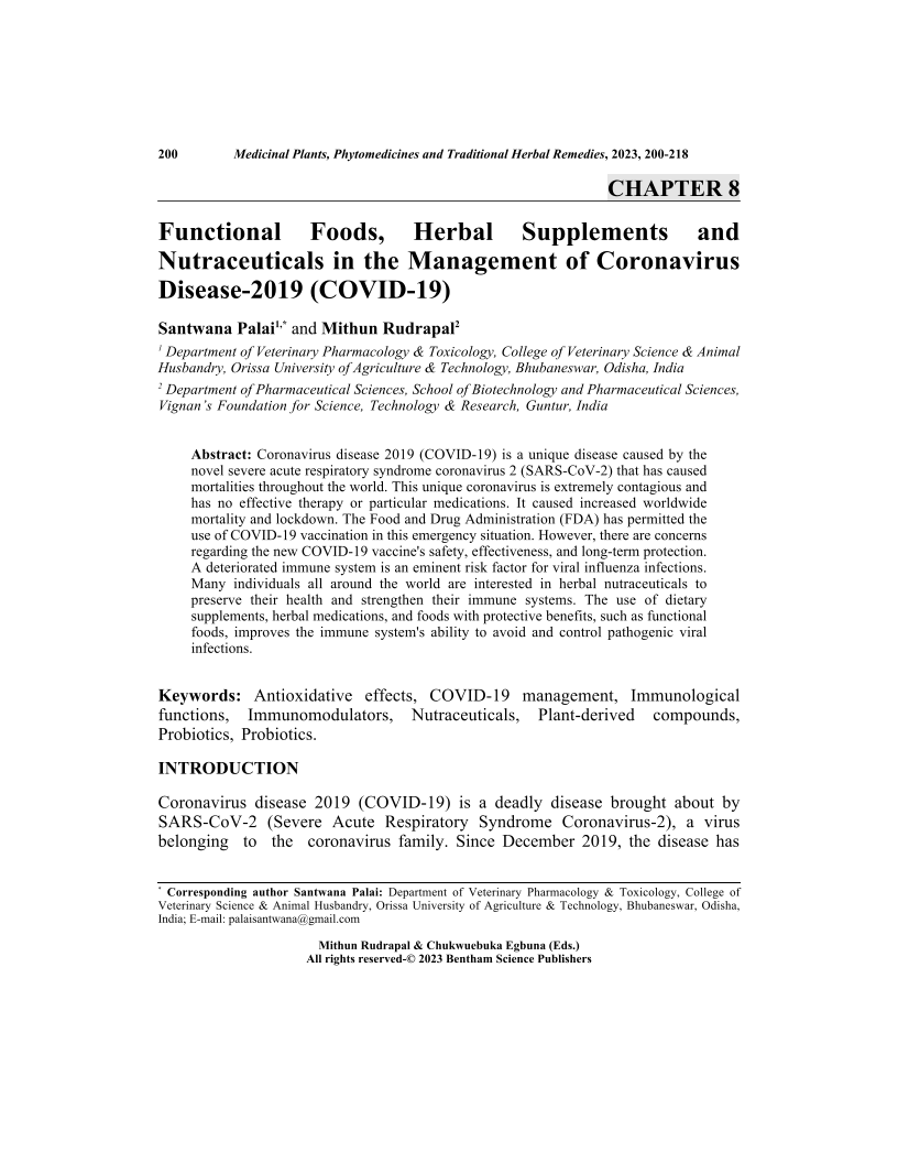 Functional Foods, Herbal Supplements and Nutraceuticals in the Management of Coronavirus Disease-2019 (COVID-19), Page 1 of 1